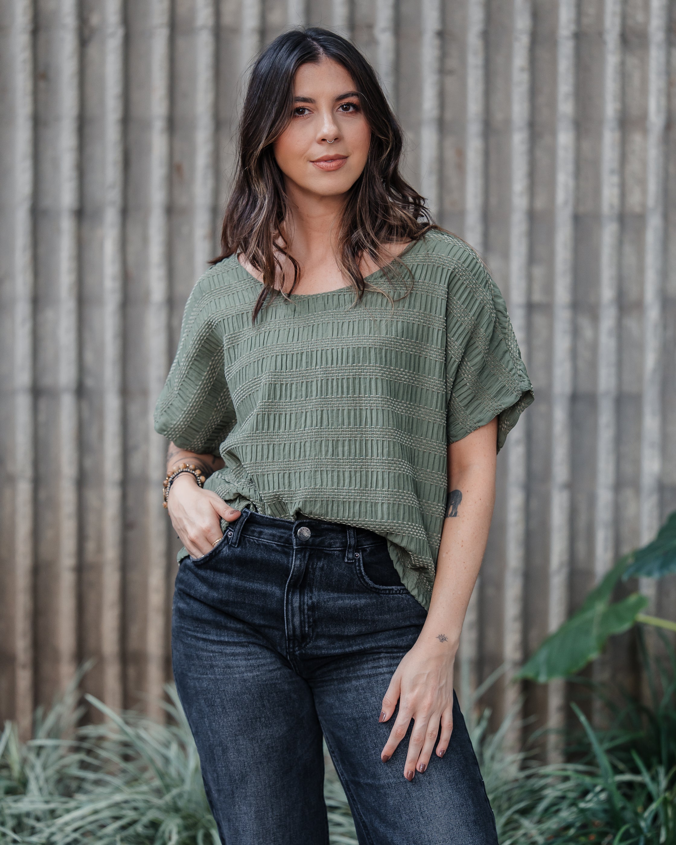 Un diseño con un fit suelto y cómodo, perfecta para el día a día... su tela fresca con textura y su color básico la convierten un prenda infaltable en tu closet, es ideal para combinar con tus looks.