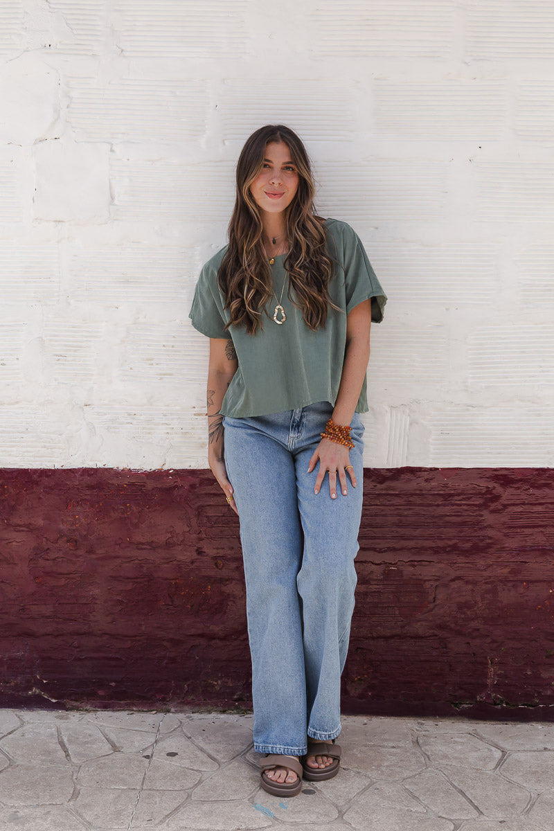 Blusa Amalia con mangas cuello redondo - Verde Oliva