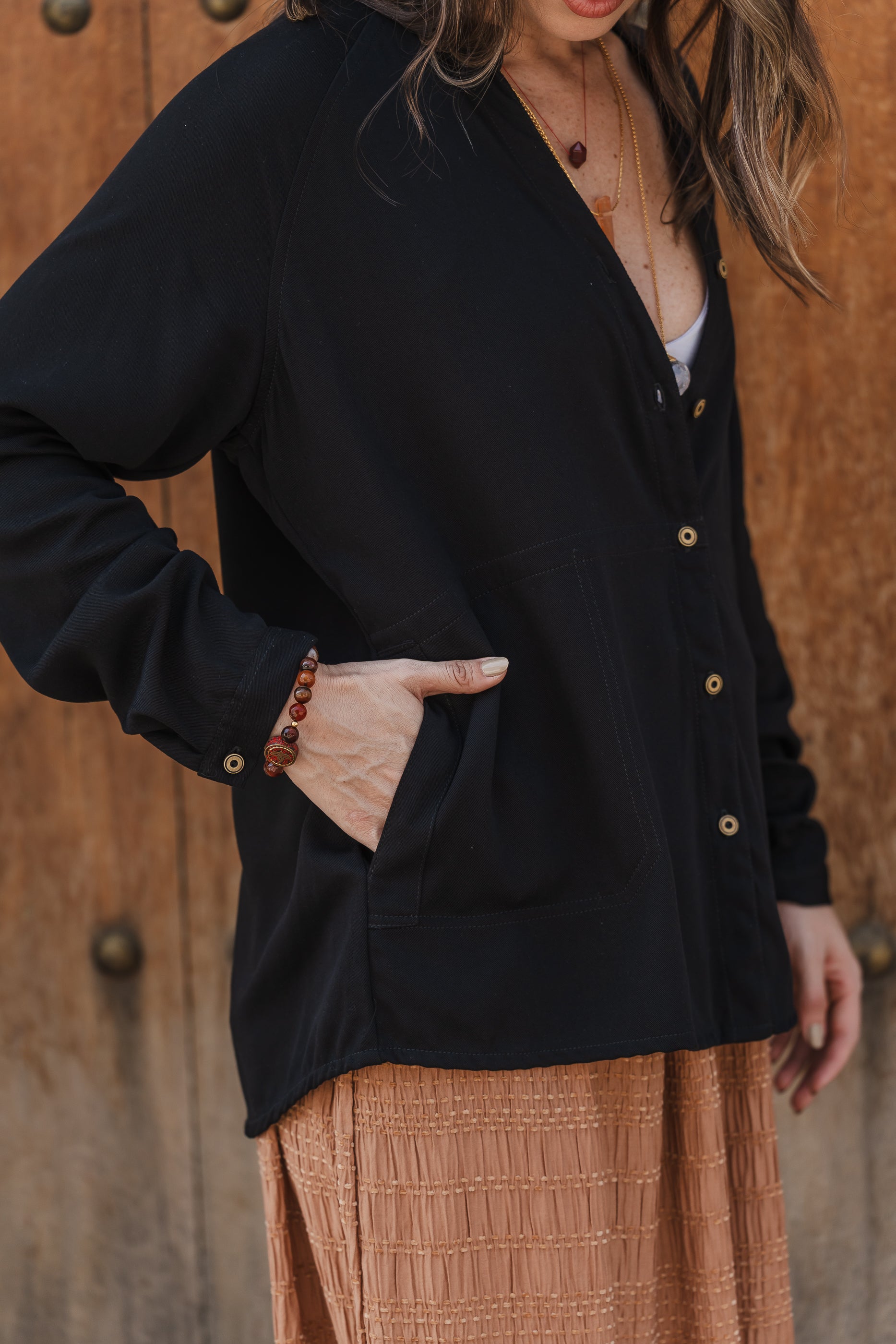 Nueva blusa Lira, sus botones, sus bolsillos y su tela la convertirán en tu prenda favorita... perfecta para todos los días y también para elevar tus looks