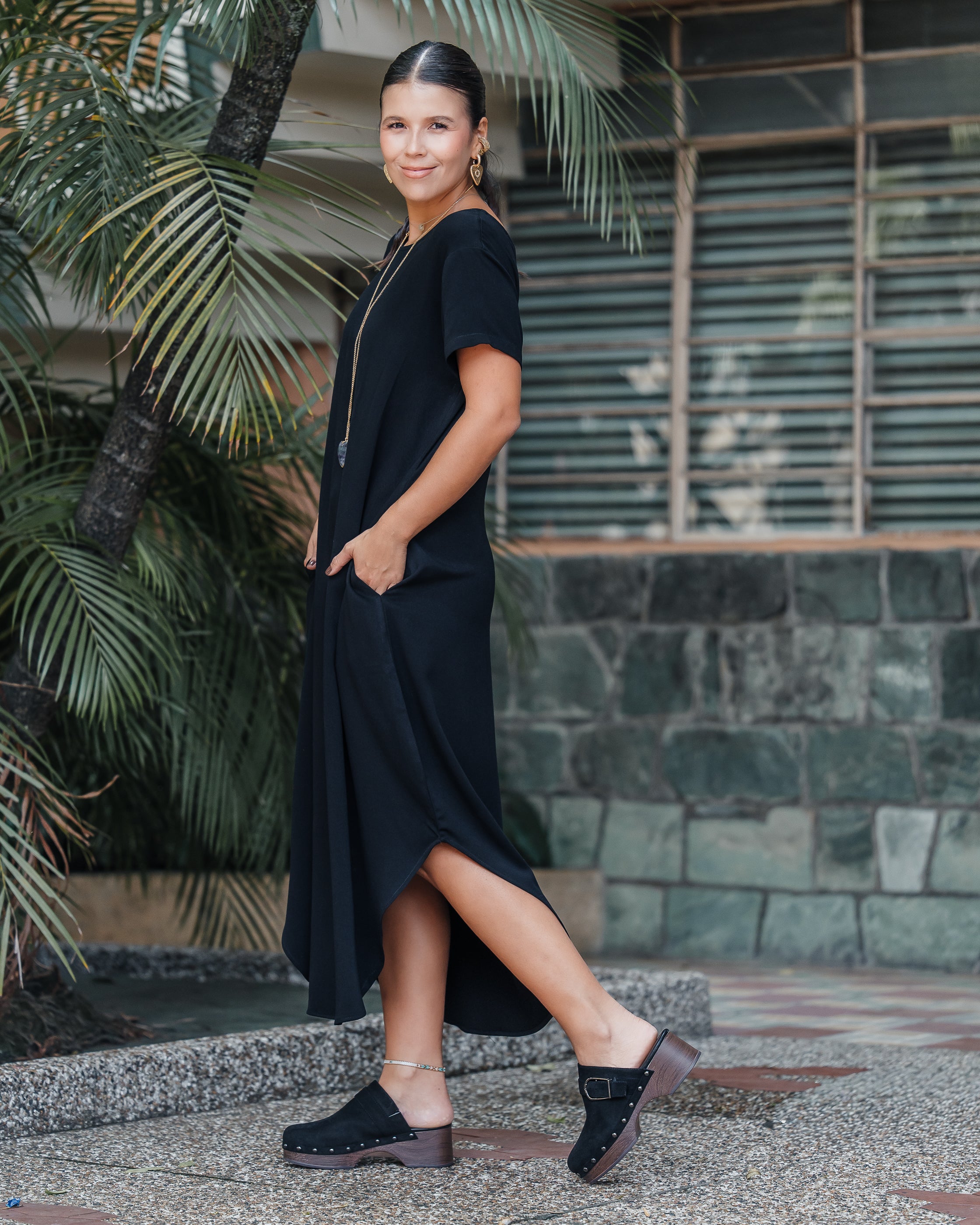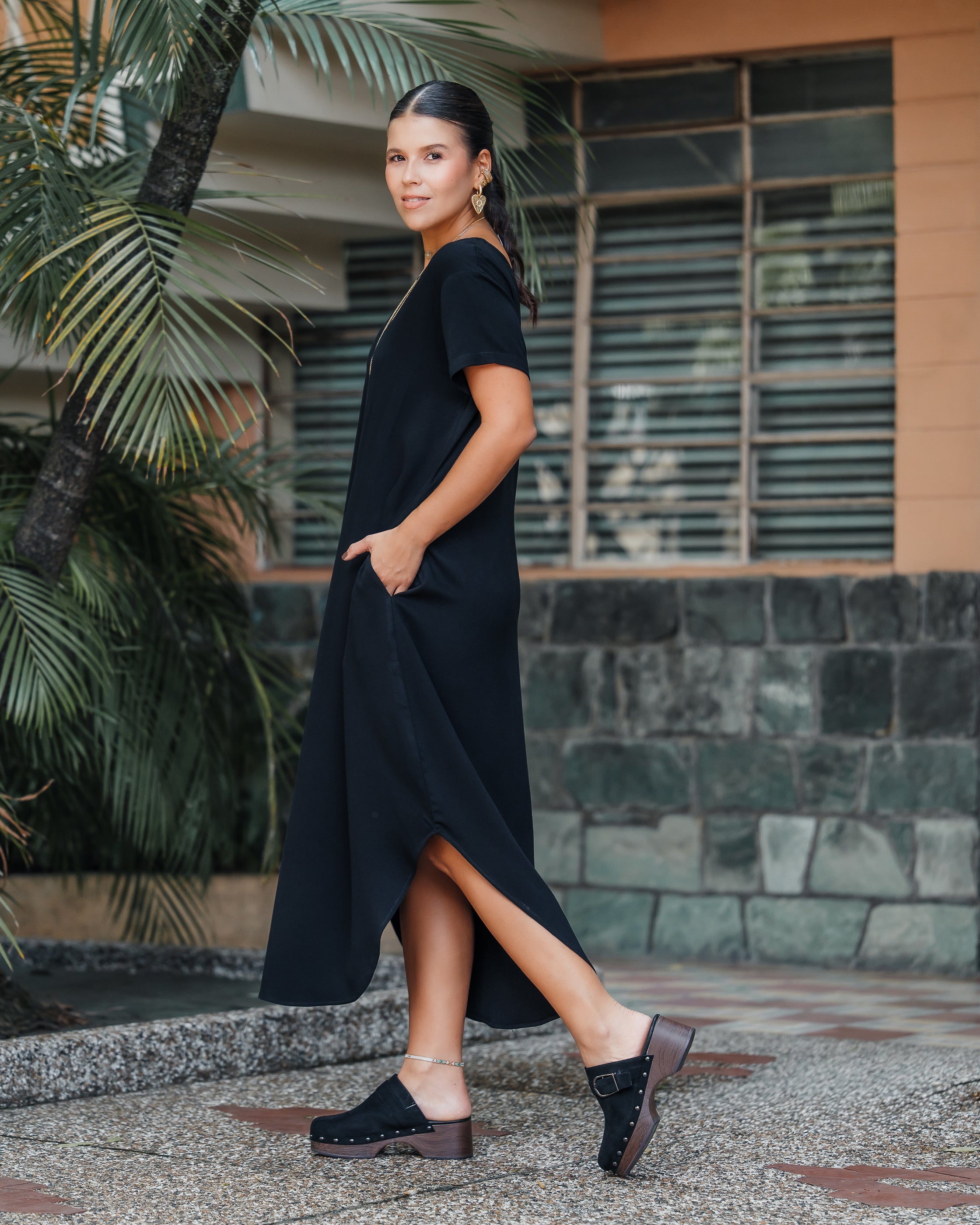 Es multipropósito...Puedes usarlo de dos formas con el cuello redondo o el cuello en V adelante o atrás, tiene bolsillos y su tela es deliciosa , te va a encantar!