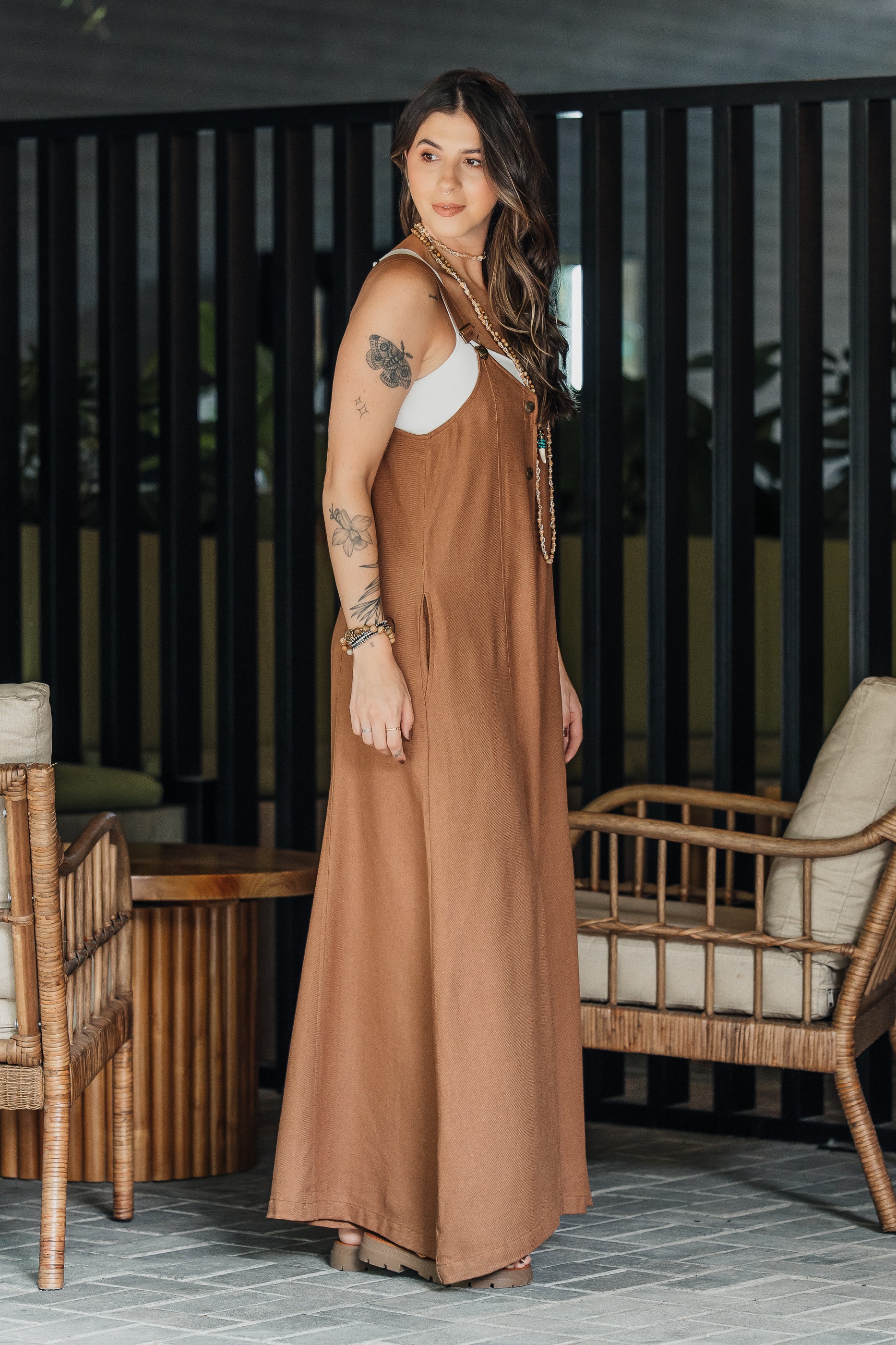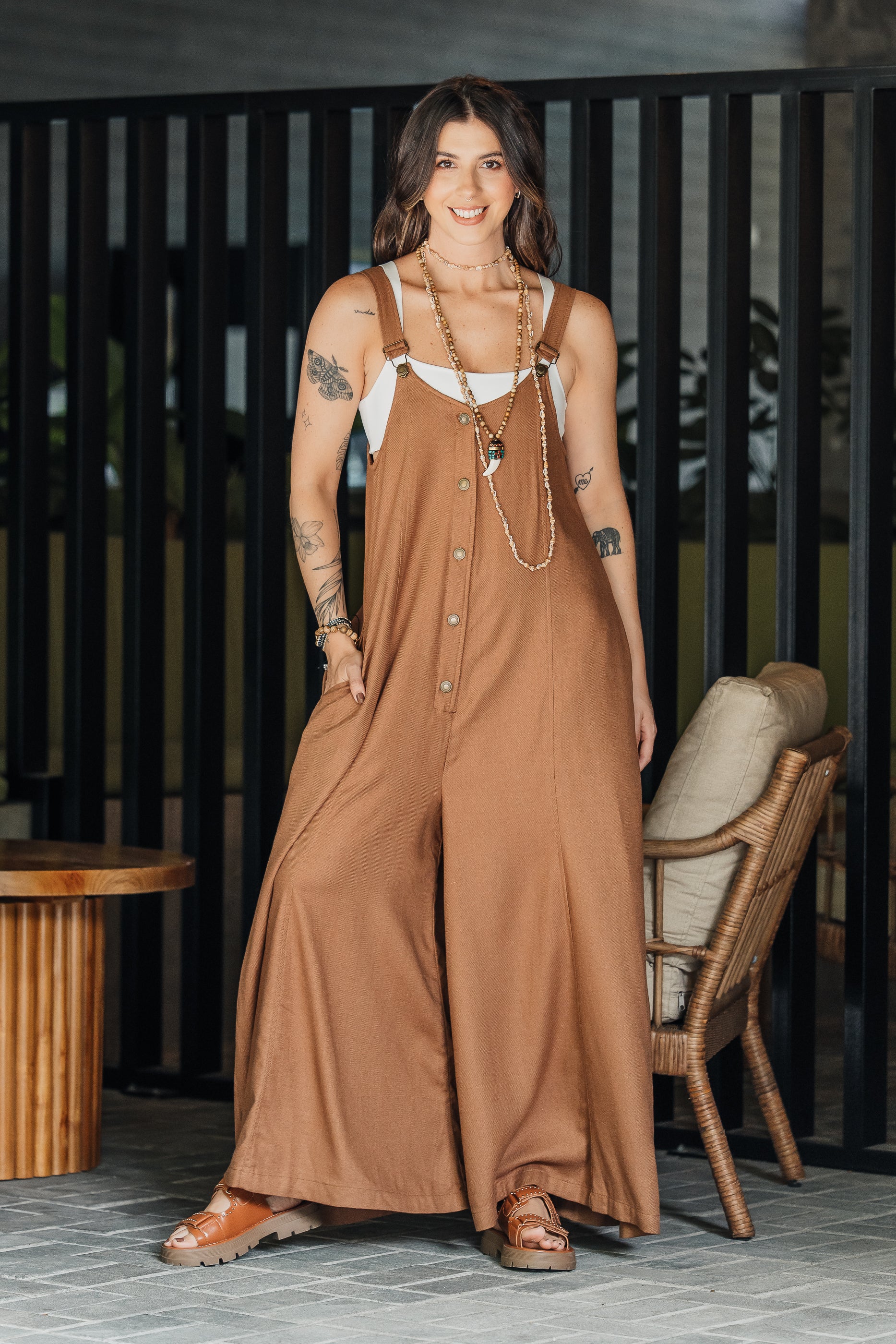 Es perfecto para TODOS los climas, su tela en lino es perfecta para climas cálidos pero si lo combinas con una blusa o buzo por debajo es ideal para climas fríos.