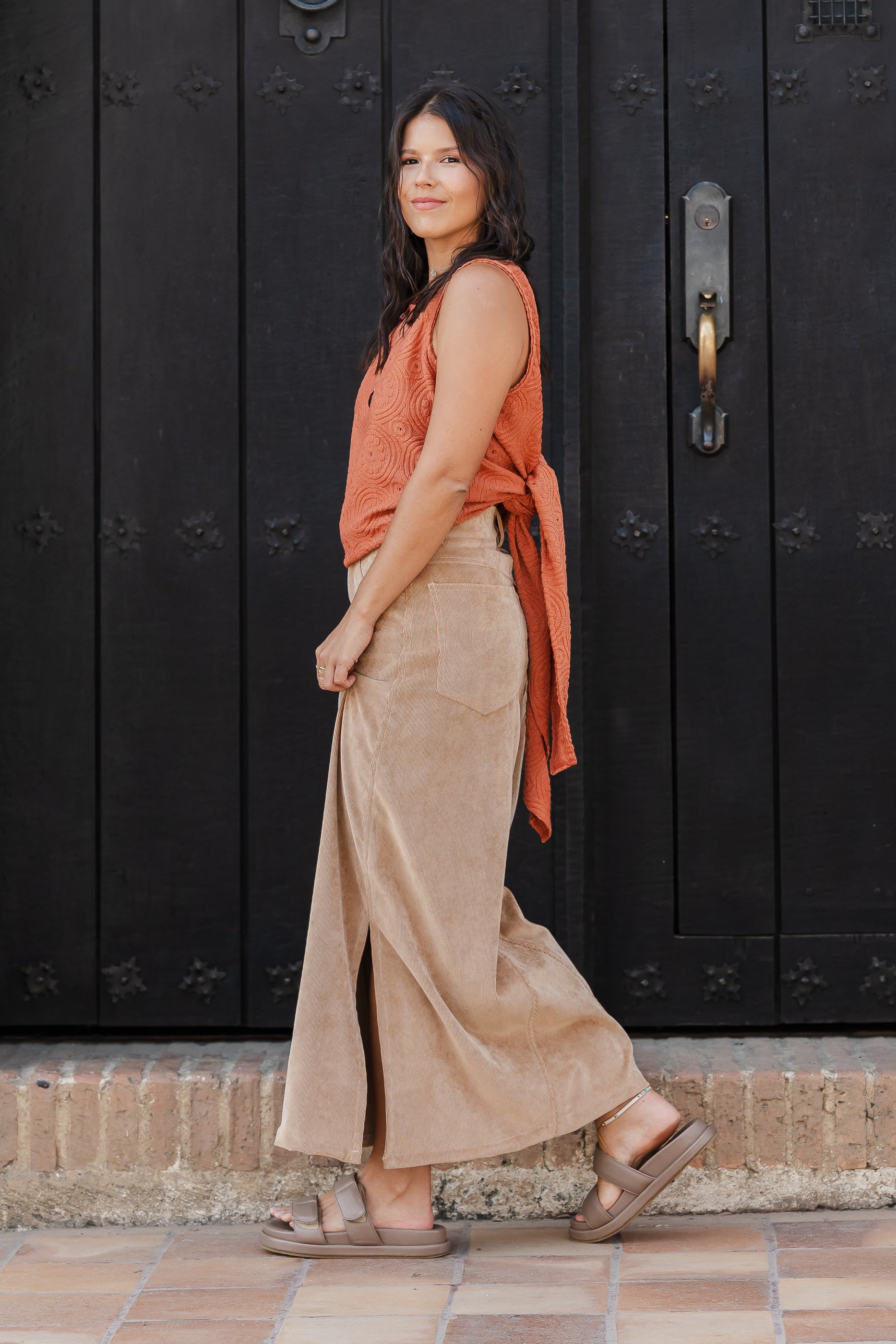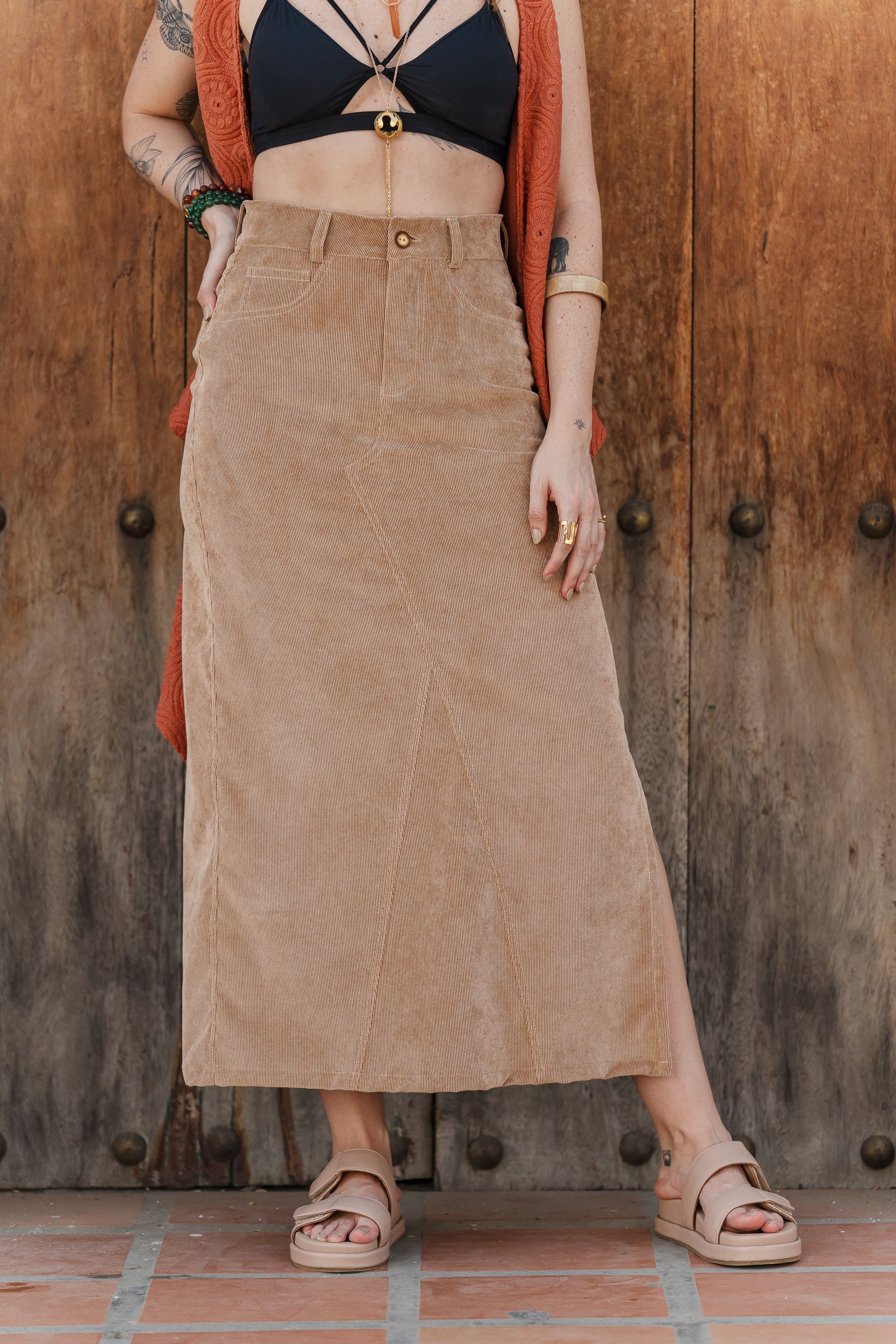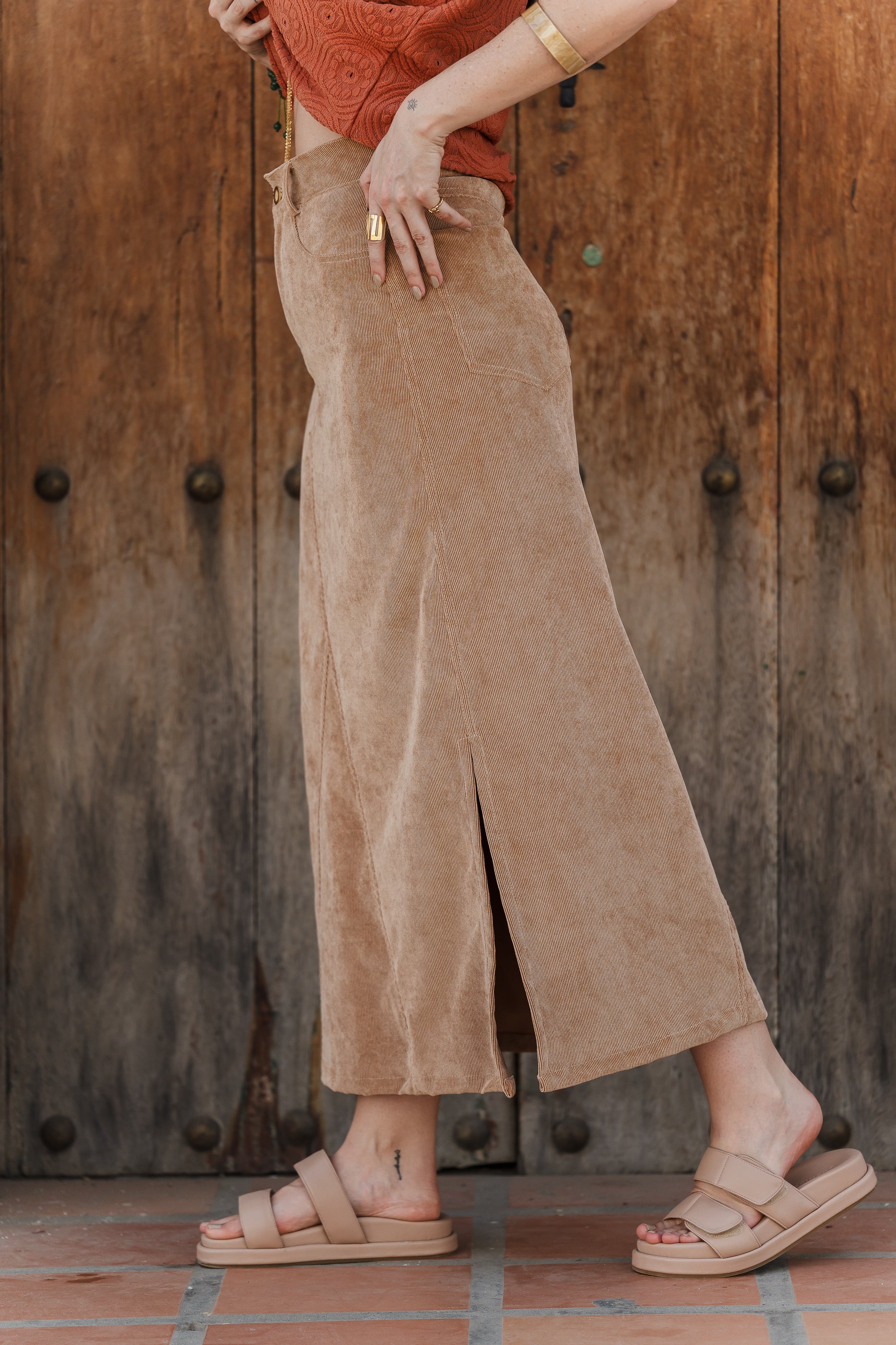 Falda Larga corduroy con bolsillos y abertura - Arena