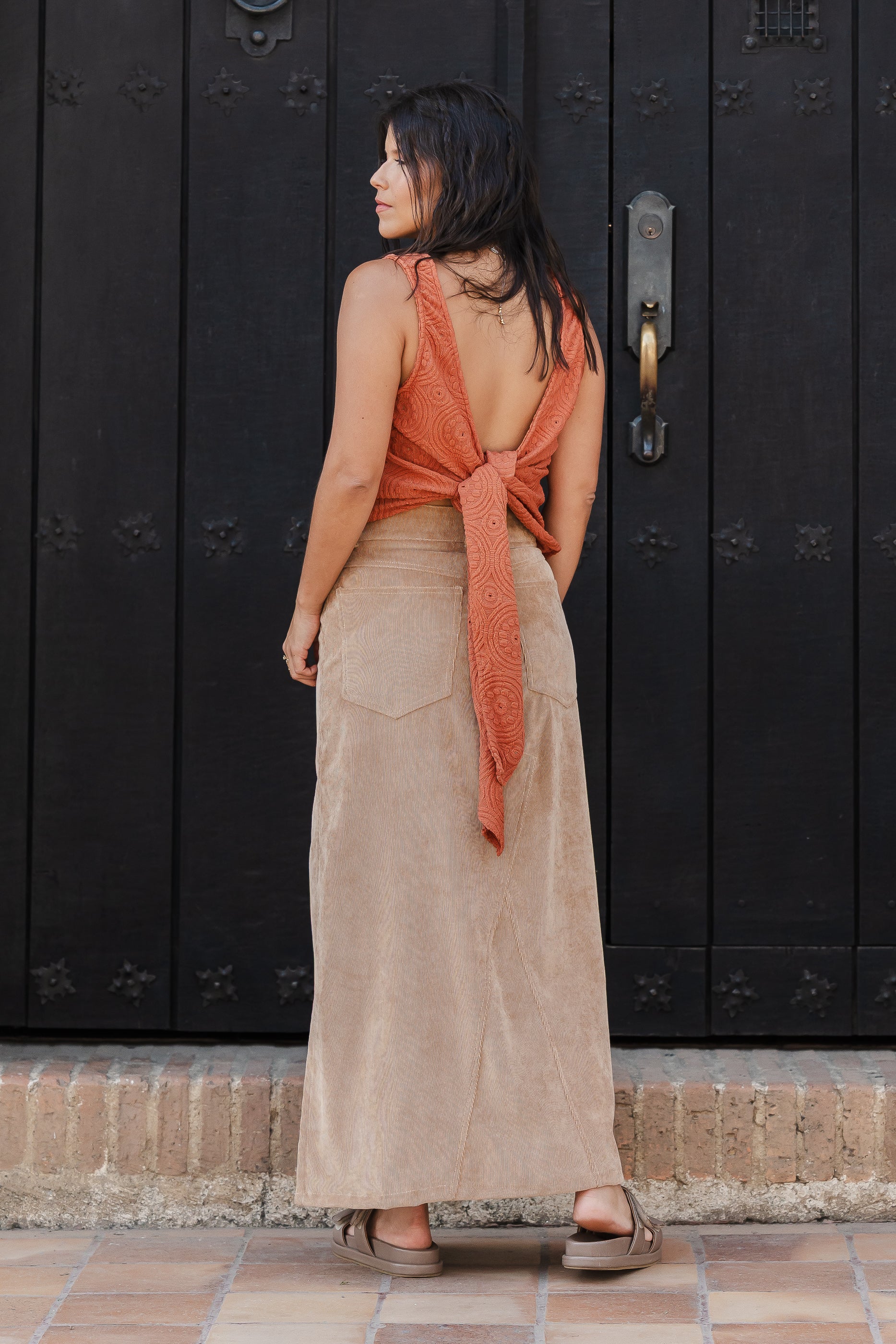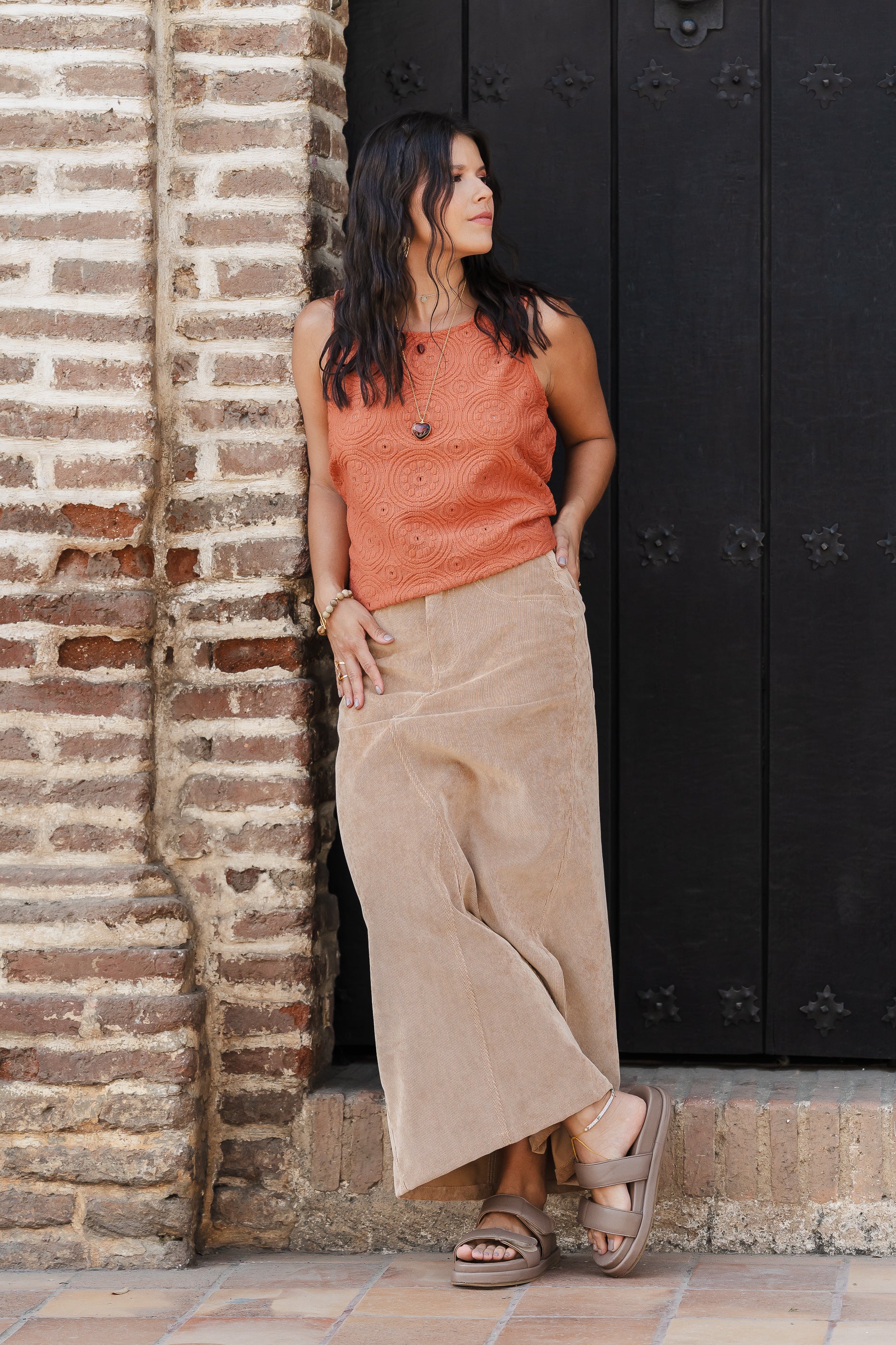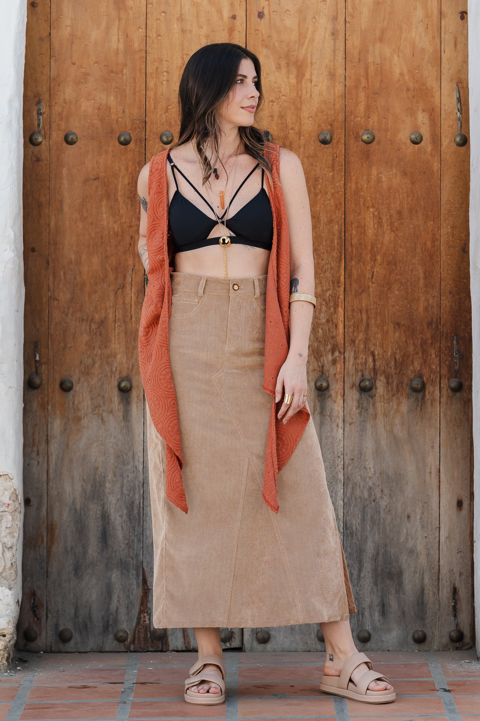 Falda Larga corduroy con bolsillos y abertura - Arena