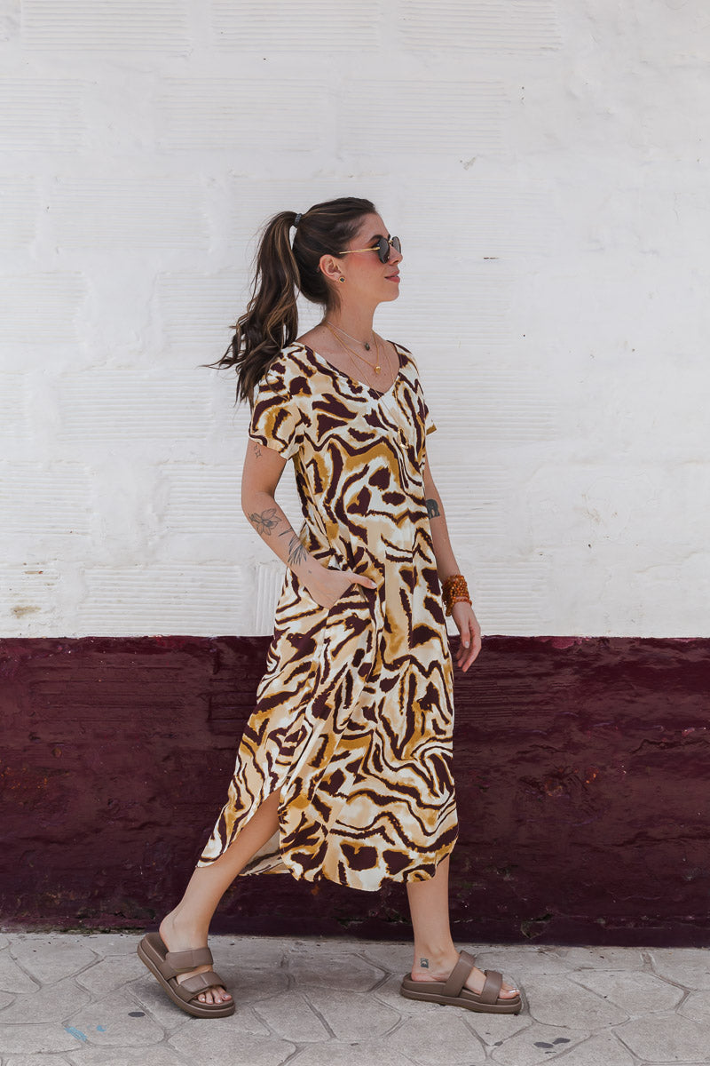 Es multipropósito...Puedes usarlo de dos formas con el cuello redondo o el cuello en V adelante o atrás, tiene bolsillos y su tela es deliciosa , te va a encantar!