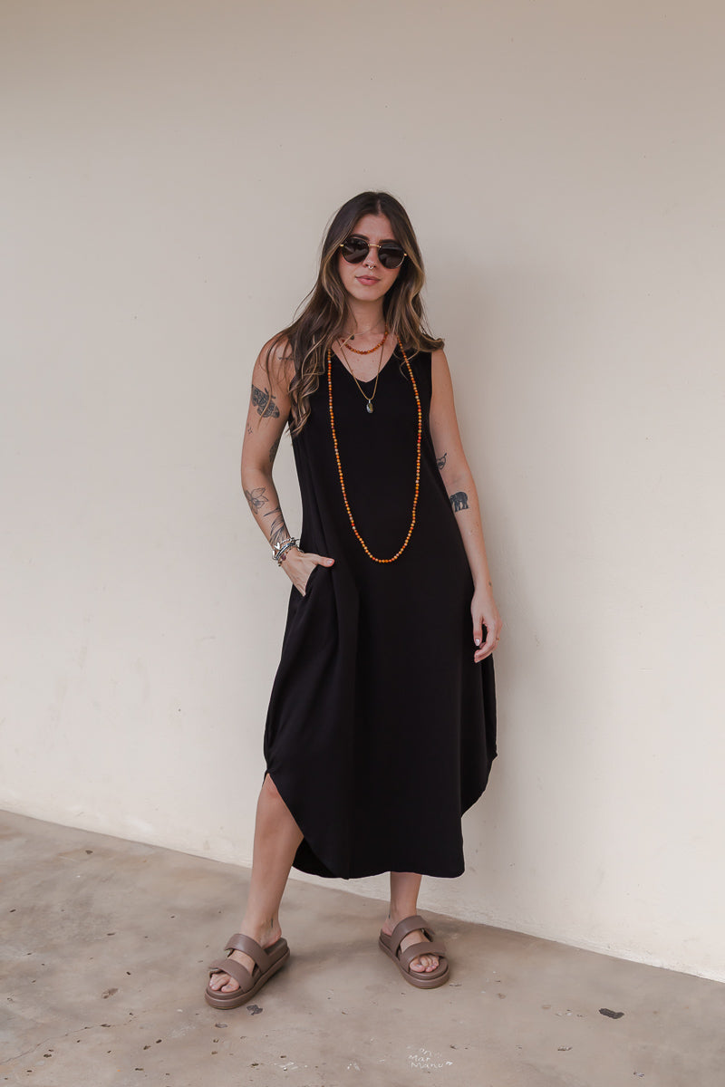 Su silueta es igual a la de nuestro vestido más vendido (Vestido Alma), un vestido básico infaltable en tu closet, sin mangas con bolsillos y mucho movimiento.